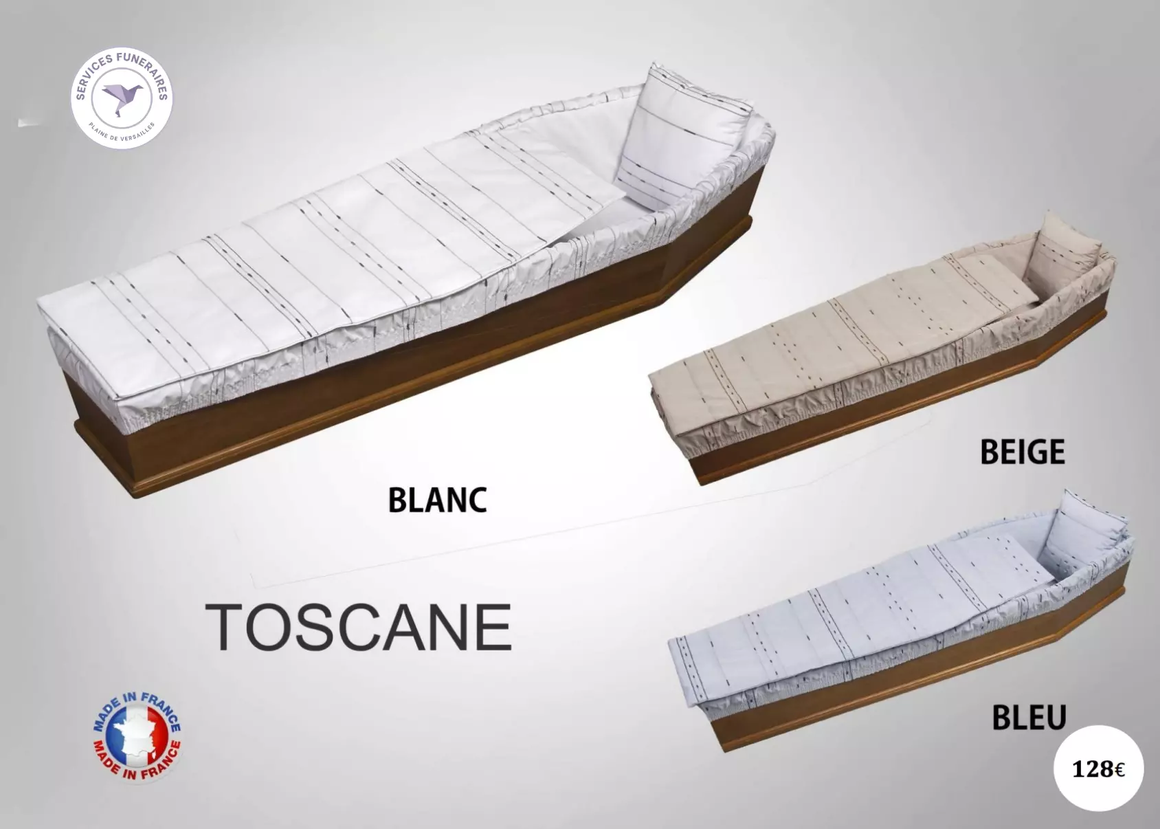Découvrez l’ensemble de nos capitons funéraires (voir les disponibilités en agence). Choisissez un modèle qui viendra personnaliser les parois du cercueil.